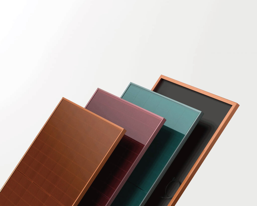 Modules photovoltaïques colorés conçus pour s’intégrer harmonieusement aux toitures en briques et tuiles.